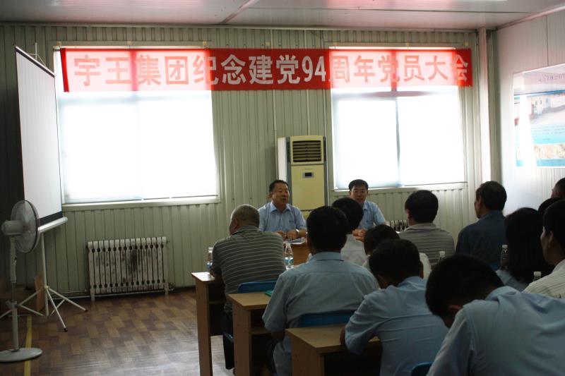 “七·一”來臨之際,宇王集團召開黨員大會,隆重紀念建黨94周年。集團公司全體在職黨員及部分退休黨員代表參加了會議。會議由集團公司黨委副書記隋樹武主持。